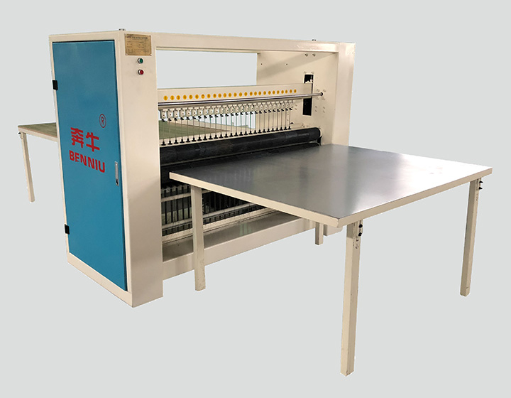 此機專業(yè)用于榻榻米底布的縫合與料塊的拼接,隨著人們生活條件的提高榻榻米墊逐漸要求為無膠化,全線縫底布成為制作榻榻米更為環(huán)保耐用的做法,工作當中的小塊材料也避免了浪費,可由此機拼接成張,提高產(chǎn)品質(zhì)量,降低產(chǎn)品成本。此機整合了我公司歷代多針厚料絎縫機的優(yōu)點和吸收了日本設備的先進技術,采用鋼板折彎一次成型非鐵架焊接,整體結構更加挺闊穩(wěn)固,螺旋針導向技術達到了防斷針、防跳線的核心功能。在此基礎上真正意義上實現(xiàn)了生產(chǎn)速度快,縫厚能力強,性能穩(wěn)定的效果。此機幾乎沒有易損件,頗受客戶好評!常用縫紉寬度有1.2米寬至1.5米寬度,行距大小及針數(shù)可根據(jù)客戶需求定做??p紉厚度可達到6公分,動力選用3.0千瓦電機驅(qū)動。