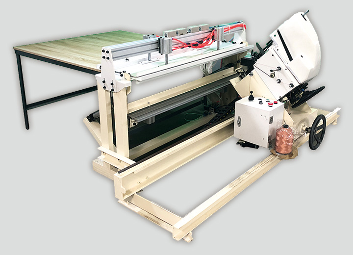 此機(jī)為榻榻米斜縫機(jī),專業(yè)應(yīng)用于榻榻米斜邊的包邊縫紉,此機(jī)吸收了日本進(jìn)口機(jī)的先進(jìn)技術(shù)特點(diǎn),融入了我公司國企工程師創(chuàng)新的先進(jìn)技術(shù),達(dá)到了榻榻米花邊機(jī)效果的更加智能化,使得榻榻米縫紉制作更加自動(dòng)化、輕松化、產(chǎn)品高質(zhì)量化。此機(jī)有全自動(dòng)模式及手動(dòng)模式,兩種模式隨意切換,自動(dòng)模式具有全自動(dòng)起頭收尾,自動(dòng)檢測收尾距離自動(dòng)分距,不需繁瑣操作,只需一鍵,即可完成當(dāng)前工序所有縫紉工作,大大降低了人工操作要求。手動(dòng)模式可用于縫紉異形榻榻米墊、開口榻榻米墊,操作實(shí)用方便。設(shè)備具有墊內(nèi)自動(dòng)鎖針功能,使收尾縫紉效果更加緊固,大大提高榻榻米墊質(zhì)量。設(shè)備電腦操控屏可根據(jù)需求用于調(diào)整縫速快慢、針距大小、縫紉系數(shù)等功能,便捷舒適。